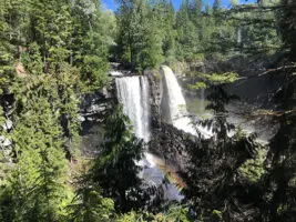 Jax got to the fence first, and at instantly started squealing. We had reached Canim Falls and they were spectacular, to put it lightly. A scene straight out of British Columbia Magazine; the river-split creating two waterfalls side by side, the light shining just right, gleaming a huge rainbow at the bottom. It was a truly jaw-dropping vista.