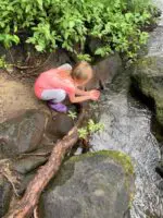 We arrived at the falls and made as much noise as possible because we knew a mama bear and her two cubs were somewhere in the area. I’ve never encountered a bear in the wild and hope to never—especially if it’s a mama and her babies. The girls were slightly nervous about the bears, but Von is an avid outdoorsman, so he just told them to sing, carry sticks, make noise. Not a difficult thing to do for the kiddos as we travelled along the trail!